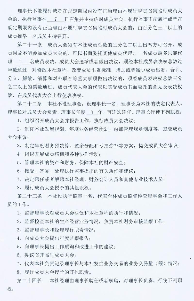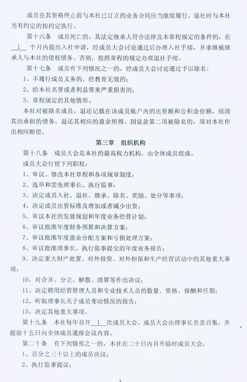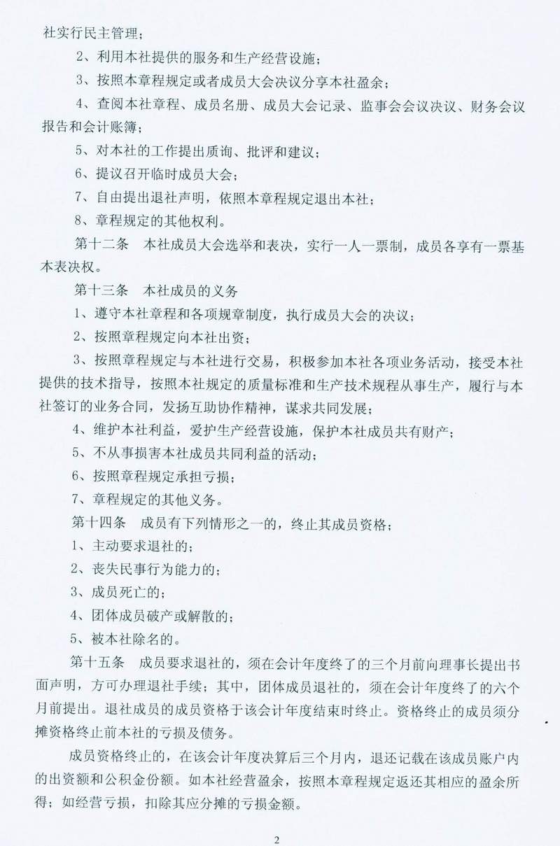 第十条 凡符合第八条、第九条规定,向本社理事长提交书面入社申请,经成员大会审查并表决通过的,即可成为本社成员。